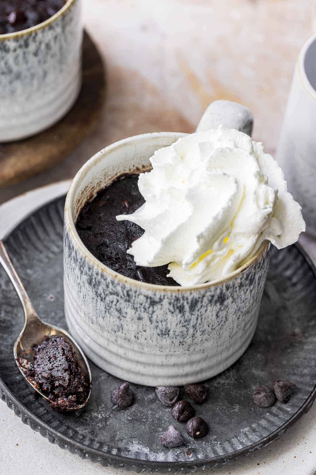I love enjoying this vegan mug brownie just as it is—warm and fudgy! But when I want to serve it extra special, I top it with a scoop of ice cream or whipped cream, a drizzle of homemade salted caramel sauce, Air fryer Dehydrated Strawberries or a sprinkle of chopped nuts.