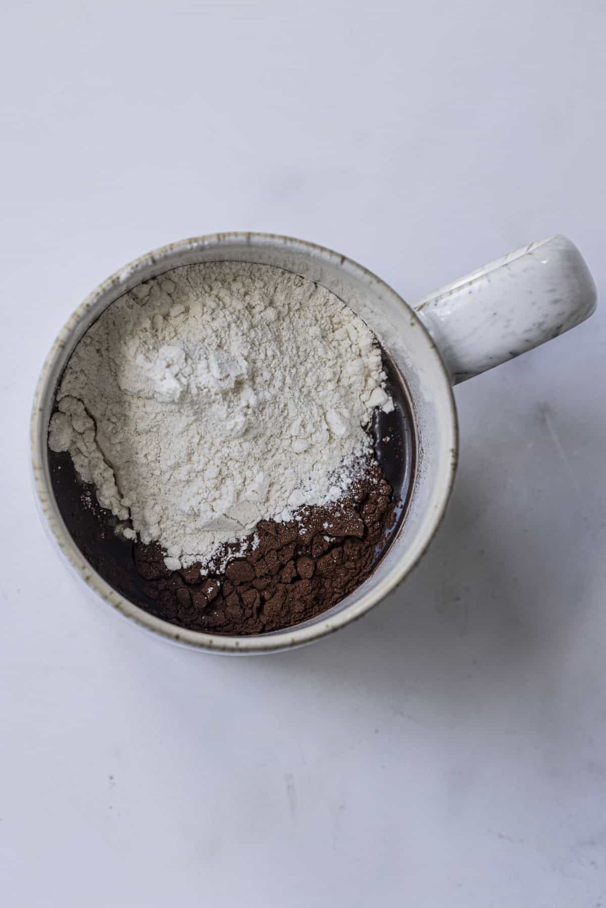 Use a microwave-safe mug with a capacity of 295ml (10 oz) or larger. Make sure there's enough room for the brownie to rise—I fill the mug max upto three-quarters full to avoid overflow. For mug recipes, I like using a sturdy ceramic microwave-safe mug like my Denby Pottery mug.