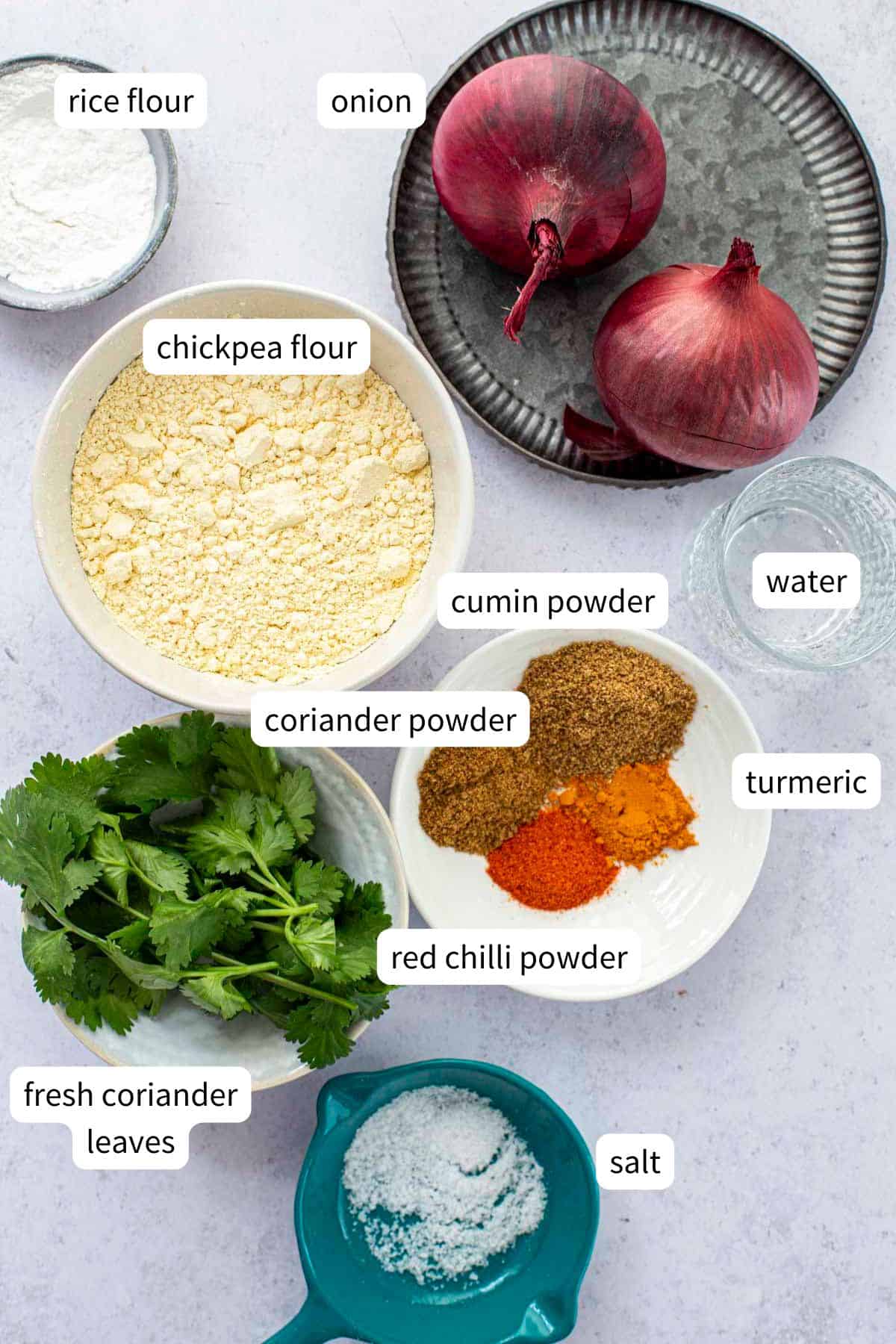 - Flour: Stick to gram flour(chickpea flour)—plain flour won’t work that well. They are easily available in the Asian Isle in supermarkets like Tesco, Sainsburys, Morrisons and ASDA.