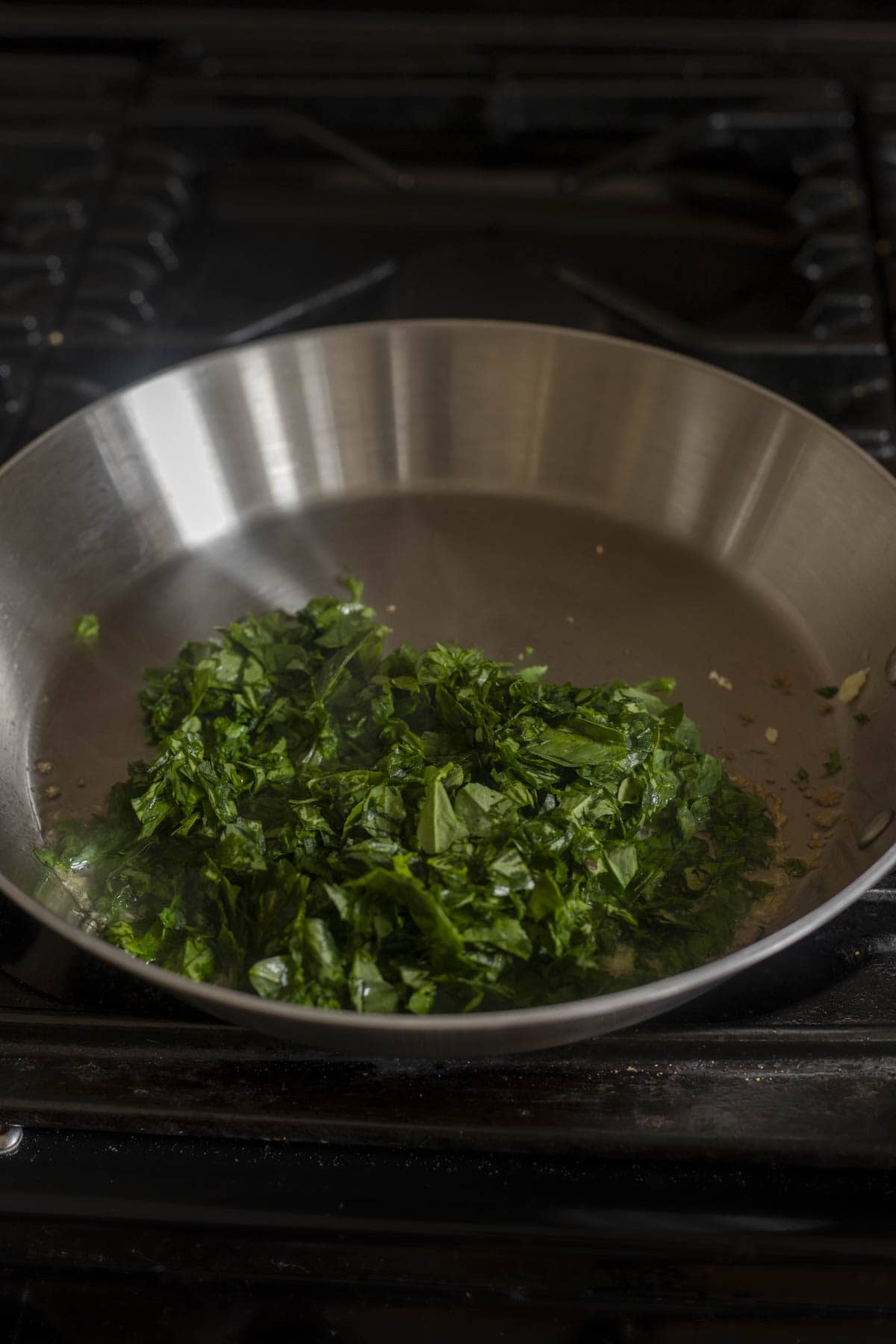 - Heat oil in a pan, add ginger garlic. sauté for 30 seconds. Add methi leaves and saute for 2 minutes. Turn off the flame.