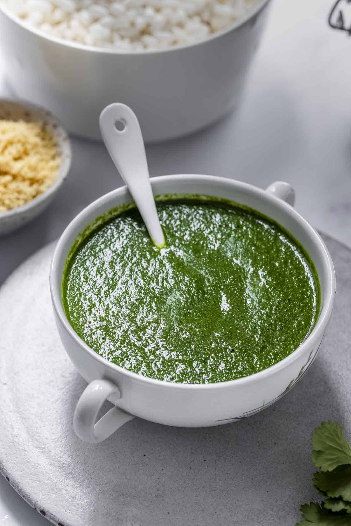I always keep a stash of this Green Coriander Chutney (also known as Hari Chutney for Chaat) in my freezer, along with tamarind-date chutney.