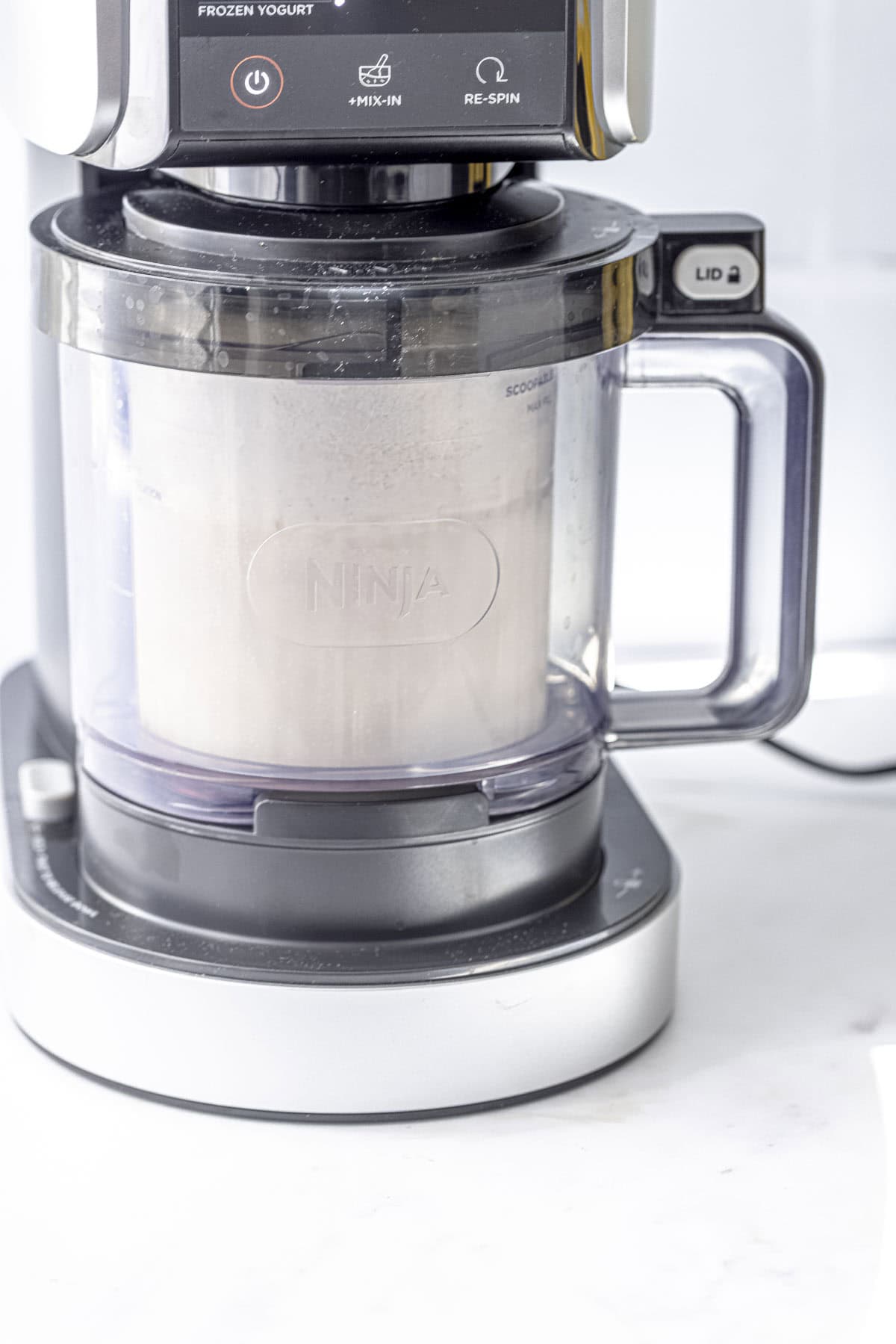 Step 3: Spin Insert the container into your Ninja Creami ice cream machine, lock it in place, and select the Ice Cream function. Re-Spin if needed: If your ice cream is crumbly, use the Re-Spin button until it reaches your desired texture.