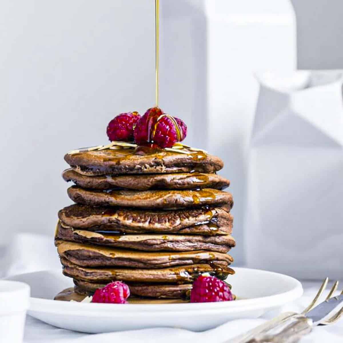 Really Quick, Easy, Healthy and Delicious is how I describe these Healthy Eggless Chocolate Pancakes.ย Have you run out of eggs in your kitchen ? How about making these Eggless Pancakes for breakfast in 25 Minutes.