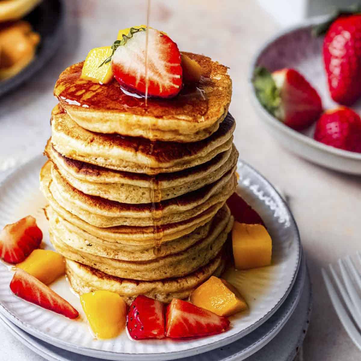At our house, we definitely have a sweet tooth, so most of my pancake topping suggestions are perfect for sweet pancakes. Personally, I can't resist the combo ofย Maple Syrup & Berriesย โ itโs my ultimate favourite.